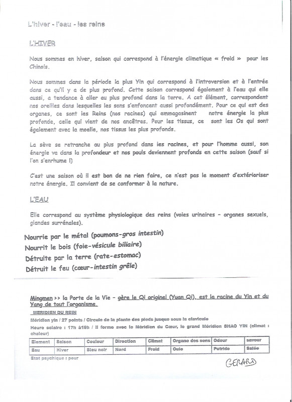 • Horaires cours Qi Gong et Tai Chi